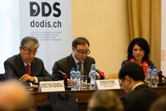 Die Konferenz wurde vom Generaldirektor der UNOG, Kassym-Jomart Tokayev (im Bild links, zusammen mit Sacha Zala, DDS, und Blandine Blukacz-Louisfert, UNOG), eröffnet. Darüber hinaus sprach Peter Maurer, Präsident des Internationalen Komitees vom Roten Kreuz (IKRK), über die Rolle von globaler Gouvernanz. Weitere wichtige Programmpunkte waren die Berichte der Delegierten über die neusten Entwicklungen in ihren Projekten sowie Workshops, in denen aktuelle editorische Fragen wie die Mehrsprachigkeit diplomatischer Dokumente und die Rolle von Social Media besprochen wurden.