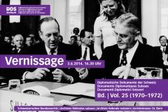 Die Diplomatischen Dokumente der Schweiz freuen sich, alle Interessierten zur Vernissage von Band 25 (1970-1972) der Reihe der DDS einladen zu dürfen. Die Veranstaltung findet am Dienstag dem 3. Juni 2014 in den Räumlichkeiten des Schweizerischen Bundesarchivs in Bern statt. Wir bitten um Anmeldung bis am 27. Mai.
