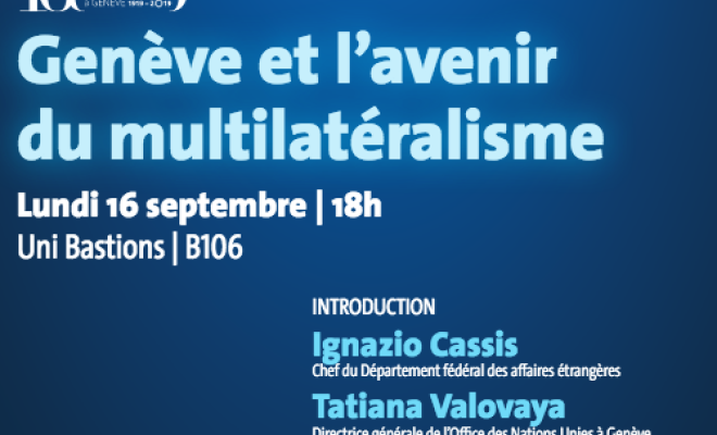 La création, en 1919, de la Société des Nations marque à la fois les débuts du multilatéralisme moderne et l'essor de la Genève internationale. 100 ans plus tard, ce sont une quarantaine d'organisations internationales, les représentations diplomatiques de 179 États et des centaines d’ONG qui travaillent ensemble depuis Genève à la construction d’un monde plus sûr, plus juste et plus prospère. Dans un univers toujours plus interdépendant, la coopération internationale est de plus en plus nécessaire. Seules des réponses multilatérales permettront de faire face aux défis globaux auxquels nos sociétés sont confrontées. Qui sont les acteurs et quels sont les processus de décision actuels et à venir? Quel est le rôle de Genève dans ce contexte en évolution? C’est le thème du débat organisé à l’Université de Genève en partenariat avec les autorités fédérale, cantonale et communale, l’Office des Nations Unies à Genève et la Fondation pour Genève. L’événement ponctue une journée de célébration du centenaire du multilatéralisme à Genève lors de laquelle la Confédération, le Canton et la Ville de Genève renouvelleront, par la signature d’une déclaration conjointe, leur engagement en faveur de la Genève internationale.Débat en présence de Ignazio Cassis, Chef du Département fédéral des affaires étrangères et Tatiana Valovaya, Directrice générale de l'Office des Nations Unies à Genève.Présentation de Sacha Zala, directeur du centre de recherche Dodis et co-éditeur de l'ouvrage «La Suisse et la construction du multilatéralisme» (www.dodis.ch/q14). Plus d'informations.